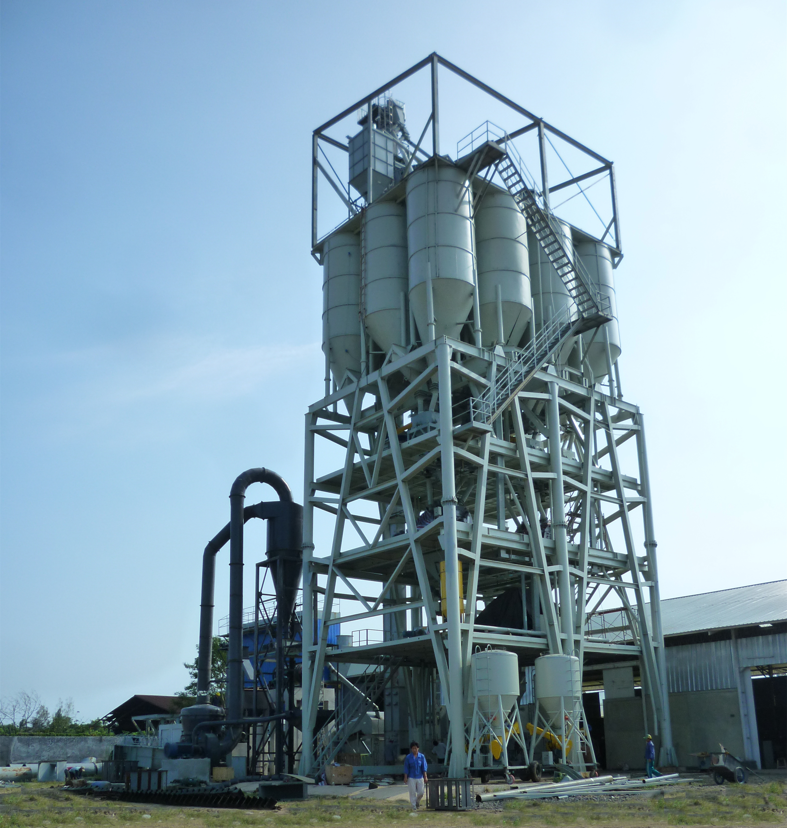 干粉砂漿生產(chǎn)線由烘干系統(tǒng)或制砂系統(tǒng)、原料存儲系統(tǒng)、自動配料系統(tǒng)、小料添加系統(tǒng)、混合主機、成品儲存系統(tǒng)、散裝或袋裝系統(tǒng)、除塵系統(tǒng)、電控系統(tǒng)等組成,具有性能先進、結(jié)構(gòu)合理、攪拌快速均勻、能耗低、污染小、操作簡單、維修保養(yǎng)方便等特點。適用于抹面砂漿、砌筑砂漿、膩子粉、瓷磚膠、粉刷石膏等產(chǎn)品的生產(chǎn)。